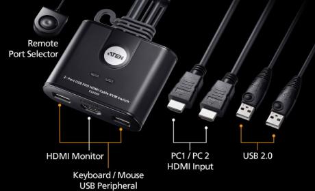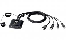 The CS22HF 2-Port USB FHD HDMI Cable KVM Switch is a control unit that allows access to two computers from a single USB and HDMI console while offering video quality up to 1920 x 1080 @ 60 Hz / 1920 x 1200 @ 60 Hz. With the CS22HF, you can quickly and effortlessly switch between two USB HDMI computers via the pushbutton on the remote port selector. The CS22HF supports multiplatform operations which allow you to switch between two different operating system PCs.