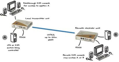 The AdderLink X2-Gold, (part of the AdderLink X Series range), extends very high quality VGA video, PS/2 keyboard, mouse, transparent, high speed RS232 and digital audio up to 300m (1000ft) over Category 5 or higher UTP cable.