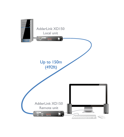 ADDERLink XD150 is a high performance DVI - USB 2.0 KVM (Keyboard, Video, Mouse) extender that enables you to locate your critical computing hardware in a secure and temperature controlled environment away from the user work station whilst maintaining the original user desktop experience.
