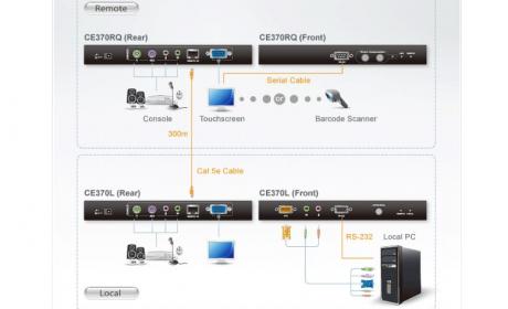 The CE370 a PS/2 based KVM Extender with automatic signal compensation and RS-232 serial functionality allows access to a computer system from a remote PS/2 console (PS/2 keyboard, monitor, and PS/2 mouse). Because it allows access to a computer system from a remote console.