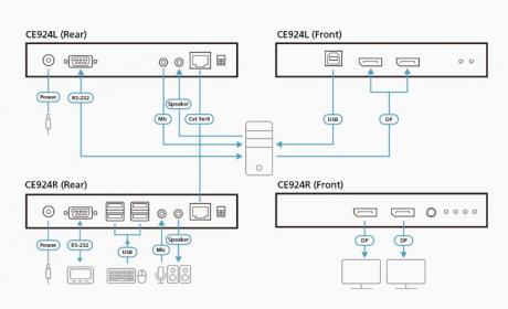 The ATEN CE924 USB DisplayPort Dual View HDBaseT™ 2.0 KVM Extender integrates the latest HDBaseT™ 2.0 technologies to deliver 4K video, stereo audio, USB, and RS-232 signals. The HDBaseT™ 2.0 guarantees the most reliable transmission on the market as well as it provides long-reach capability that extends Full HD 1080P signals up to 150 meters. In addition, CE924 supports single 4K display or dual 1080p display for DisplayPort video output resolution up to 100m by using a single Cat6 / 2L-2910 Cat 6 cable.