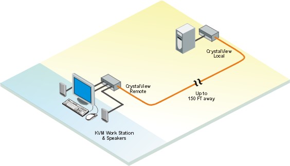 The Rose Electronics CRK-M2U1V CrystalView KVM extender system consists of two units, a Local Unit and a Remote unit, the Local unit connects to your CPU using a CPU adapter cable or a KVM switch, the Remote Unit connects directly to the keyboard, video monitor and mouse cables of a KVM station. The Local and Remote Units are connected together with up to 150 feet of industry standard CATx cable.