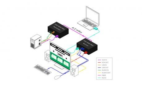 The FDX-3000-PRO is a single-mode fiber extender for DVI-D video, stereo audio, RS-232, and USB keyboardmouse signals. Using its powerful fiber optic technology, the FDX-3000-PRO sends 1080p (1920x1080 @ 60Hz) Full HD audio-video and keyboard-mouse signals up to 10km (6.2m) away at lightning fast speeds without the risk of interference or interception.