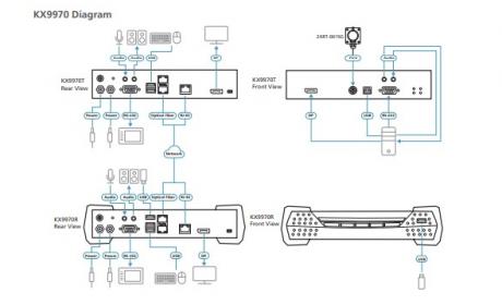 The KX9970 5K DisplayPort Single Display KVM over IP Extender consists of a high performance IP-based transmitter (KX9970T) and a receiver (KX9970R), where the transmitter can transmit a computer’s keyboard, video, mouse, and USB signals to the receiver for providing separate console accesses from both the transmitter’s and receiver’s locations. The setup allows extended access to computer systems via a USB console (USB keyboard, USB mouse, DisplayPort monitor) over Intranet, enabling users to place the computers in secure and temperaturecontrolled environments, which may be isolated from the user workstation.