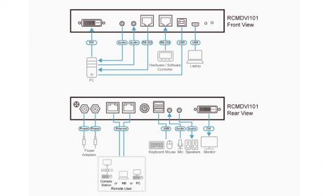 The RCMDVI101 provides over-IP capability to the connected ATEN DVI KVM switch (e.g. 8-Port USB DVI / Audio KVM Switch - CS1768), ATEN KE Transmitter/ Receiver (e.g. DVI-I Single / Dual Display KVM over IP Transmitter / Receiver - KE6900A/KE6940A), and / or LCD console (e.g. DVI LCD Console - CL3800).