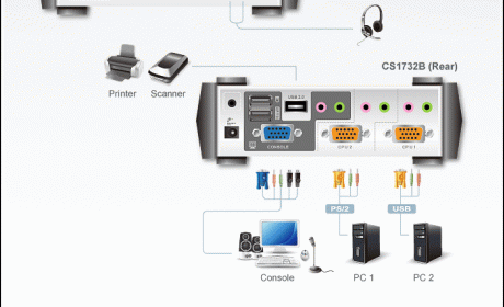 The Aten CS1732 VGA - USB 2 port KVM Switch has built-in USB on each of the front and rear panels and audio signal connectors.