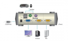 The CS82U/CS84U PS/2-USB KVM Switch is a desktop control unit that allows users to access two or four computers from a single KVM console (PS/2 or USB keyboard and mouse, and VGA monitor). In addition, CS82U/CS84U comes with ATEN's new Video DynaSync™ technology, which eliminates boot-up display problems and optimizes resolution.