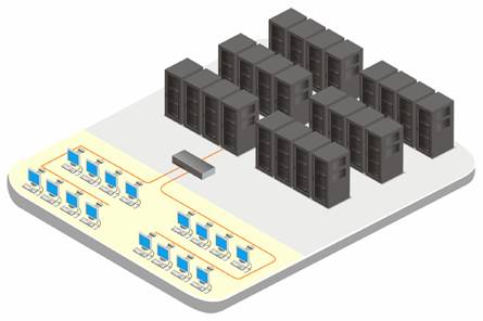 At the user side connect a KVM user station to access any computer. The built in Onscreen Display and hot-key system allows you to select a computer using simple keyboard commands or from a sortable list and switch to it instantly.
