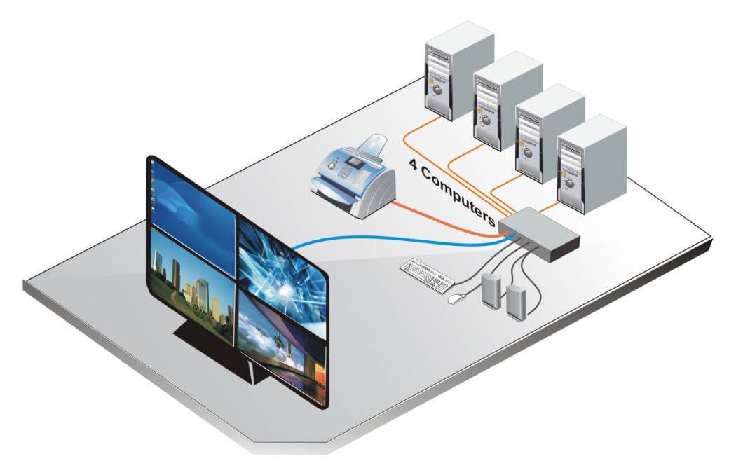 The Rose Electronics QV-4kvmHDMI QuadraVista HDMI is a flexible and powerful multi-viewer product with the capability to control and monitor up to four HDMI video sources on a single display. Each of the quadrants can be adjusted and positioned to any size or location on the display.