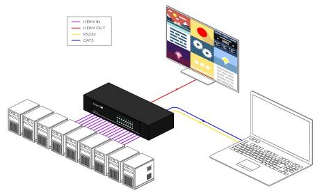 Connections to video sources are managed via HDMI, with advanced viewing options such as dual-mode, quad-mode, full-mode and 9-mode. This device enables user-friendly management of multiple video sources by accessing them from a single workstation with one display.