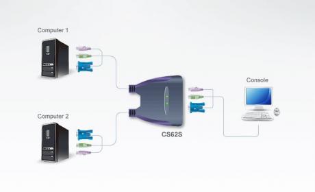 CS62S 2-port KVM Switch has a handy design integrating with 0.9m of cable. It can control 2 servers via a single console.