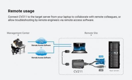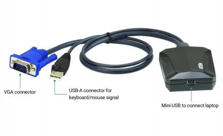 The CV211 Laptop USB KVM Console Crash Cart Adapter provides a direct Laptop-to-Computer connection to servers, computers, kiosks and ATMs. It eliminates the need for heavy crash carts while offering BIOS-level access, bi-directional file transfers, hotkey macros, video recording and screenshots through a USB 2.0 and VGA composite cable.