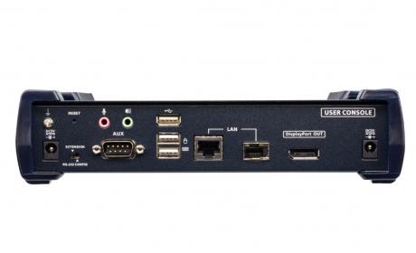 KE9950T / KE9950R features one DisplayPort display at each end, providing video resolutions up to 3840 x 2160 @ 30 Hz (4:4:4) as well as flawless and lossless video compression quality with extremely low latency. KE9950T and KE9950R both support connections via an RJ-45 port or a SFP slot. The transmitter KE9950T and receiver KE9950R working as an IP-based extender can be connected either directly to each other or via a high-speed network, over a copper-based or fiber-based LAN, ensuring 24/7 availability of remote access to servers. To connect via the SFP slot, the extender supports 1Gbps SFP fiber module* expansions, enabling connections via fiber optic network to extend transmission distances up to 10 km.