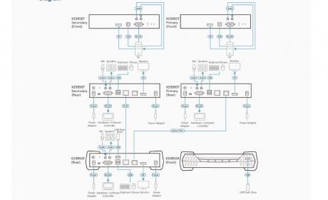ATEN KE9950 Air Traffic Control Bundle Solution consists of two high performance IP-based transmitters (KE9950T) that connect to two PCs / servers and an IP-based receiver (KE9950R), providing console access from a separate location. The solution builds effortless IP extension that eliminates the distance restrictions of control room management, enabling a faster response to mission-critical data center emergencies. With Primary-Secondary Architecture, the KE9950 Air Traffic Control Bundle Solution enables connection to a primary and a secondary computers that allows instant system failover via hotkey switching without moving around workstations. The deployment of ATEN KE9950 Air Traffic Control Bundle Solution allows access to a computer system from a remote USB DisplayPort console (USB keyboard / mouse and DisplayPort monitor) over the intranet, allowing the computer to be located in a secure and temperature controlled environment, which is also isolated from the user workstation.