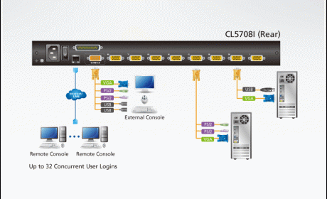 The CL5708iM / CL5716iM LCD KVM Switch is an IP-based KVM control unit that allows both local and remote operators to monitor and access multiple computers. Remote users access the switches over the Internet by means of a web browser using TCP/IP for its remote communications protocol.