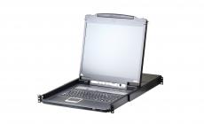The Aten CL5708iM Slideaway 17" LCD rack console with an 8 or 16 port KVM Switch is a control unit that allows access to multiple computers from a single PS/2 or USB KVM (keyboard, video, and mouse) console. A single CL5708iM / CL5716iM can control up to 8 or 16 computers. As many as 15 additional KVM switches can be daisychained to the CL5708iM / CL5716iM, so that up to 128 computers can all be controlled from a single KVM console.