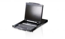 The CL5816 19" LED-backlit LCD monitor and keyboard/touch pad modules slide independently of each other. To maximize space in your data center, the keyboard/touch pad module slides back to "hide away" when not in use, while the thin profile LCD monitor rotates back - flush against the rack - allowing convenient monitoring of computer activity. Quickly and conveniently switch computer access with station and port selection pushbutton switches located on the keyboard module. Even when the keyboard module is in the retracted position you can still switch access with the Port Up/Port Down pushbuttons located on the monitor module.