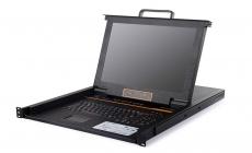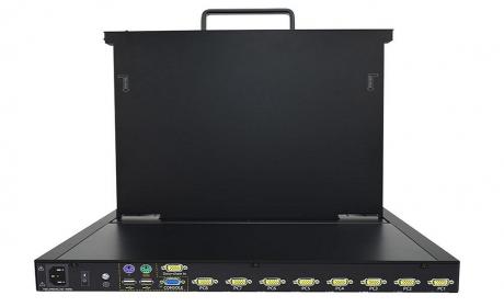 The Kinan's XL1708 LCD KVM Switch features an integrated 17" LCD screen, keyboard and touchpad in a single console that occupies only 1U of rack space. It allows access and control up to 8 computers from a single console (keyboard, mouse and monitor). The number of connected computers can be increased up to 256 by daisy-chaining up to 31 XM0108 KVM Switches.