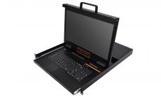 - Integrated rack console with 18.5” rack mount monitor and keyboard/touchpad and 8 port rack kvm in a 1U height console
