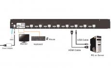 The KVM switch supports both USB connections for the computers. An extra HDMI port allows an additional HDMI monitor to be connected.