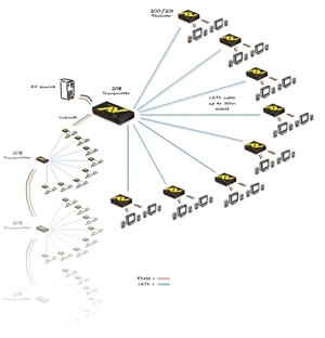 The new range of audio video extenders from Adder deliver high resolution crystal clear video and CD quality digital stereo audio across installations up to 2000ft in width, or 1000ft point to point. With full RS232 support video display panels can be controlled and interrogated remotely, making the AV200 series the ideal professional Narrowcast Digital Signage solution.
