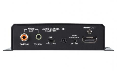 • Supports Audio De-Embedding – extracts audio stream from an HDMI source and delivers as a separate audio from HDMI, Coaxial S/PDIF, or Stereo audio output