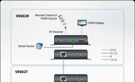 The Aten VE802R HDMI HDBaseT-Lite Receiver connects with HDBaseT transmitters* to extend signals up to 70m from the source using one Cat 5e/6/6a cable. It supports RS-232 and IR signaling pass-through, allowing you to control the HDMI source device from the remote unit (VE802R) while also granting access to the HDMI display device from the local unit (VE802T). IR signals can also be extended in both directions. The VE802R is HDMI (3D, Deep Color,4k) and HDCP compatible.