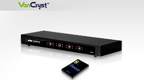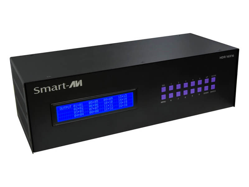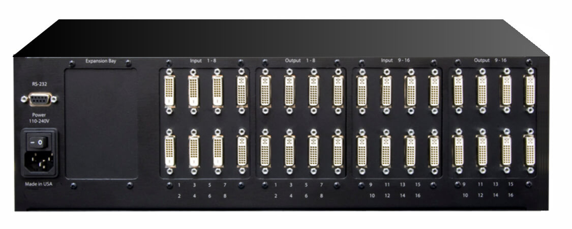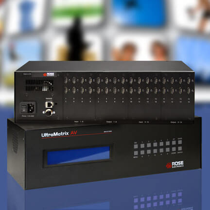 VGA, DVI, HDMI & HD-SDI video formats with Audio & switching over IR, RS232 or web based TCP/IP control; extension from the switch to the screens is also offered over HDbase-T CatX or Fiber Optic cable