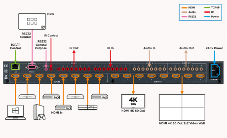 Out of the box, it will operate as a fully-fledged seamless 4K scaling 8x8 Matrix with video walling. All these amazing features are packed in an easy to install 19” 1U rack-mount unit, with simplistic control, making it suitable for a wide variety of applications within the residential, education, commercial and hospitality sectors.