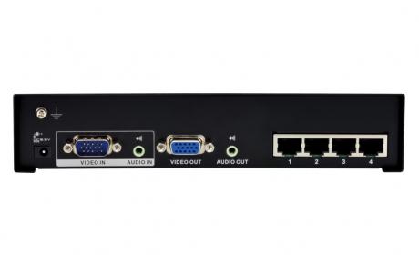 The VS1204T A/V Over Cat 5 Splitter is a splitter designed to connect one source to 4 displays over a long distance. Incorporating suggested compatible receivers*, the VS1204T A/V Over Cat 5 Splitter can be a complete solution ideal for any professional A/V installation that requires multimedia content to be delivered to multiple destinations located up to 300 m away from the source.