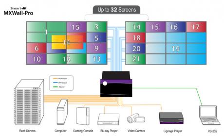 Combining the fully functional switching capabilities of a matrix and the versatile high definition capabilities of a converter, SmartAVI’s MXWall Pro is the ideal all-in-one video wall hardware solution. Specifically designed and optimized for the most demanding environments and applications, the MXWall Pro lets users effortlessly manage and route up to 32 HDMI video sources to 32 HD displays in real time in stunning 1080p resolution.
