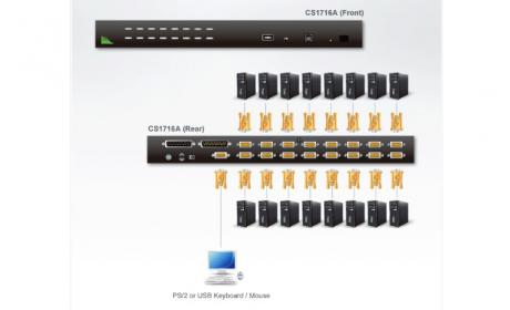 The CS1708A  and CS1716A KVM switch is a control unit that allows access to multiple computers from a single PS/2 or USB console (keyboard, mouse, and monitor).