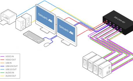 The SM-UVH-4D is a universal solution that supports both DisplayPort and HDMI sources and monitors. You can mix and match DP and HDMI PCs and displays across the same unit without compromise, solving a growing challenge in multi-format environments
